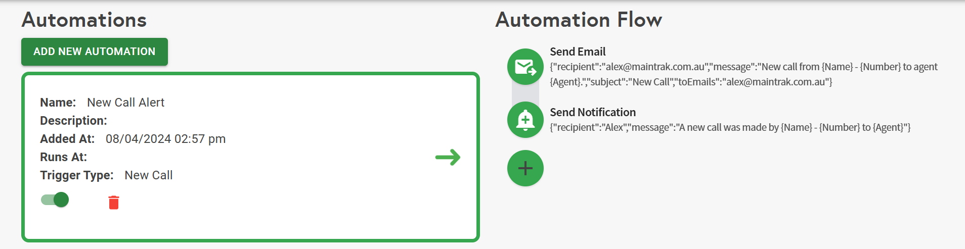 MainTrak’s automation features enable you to build custom workflows that trigger actions based on specific events, such as the creation of a new job or the deletion of a call. Automations help you save time, reduce manual effort, and ensure consistent processes across your operations.