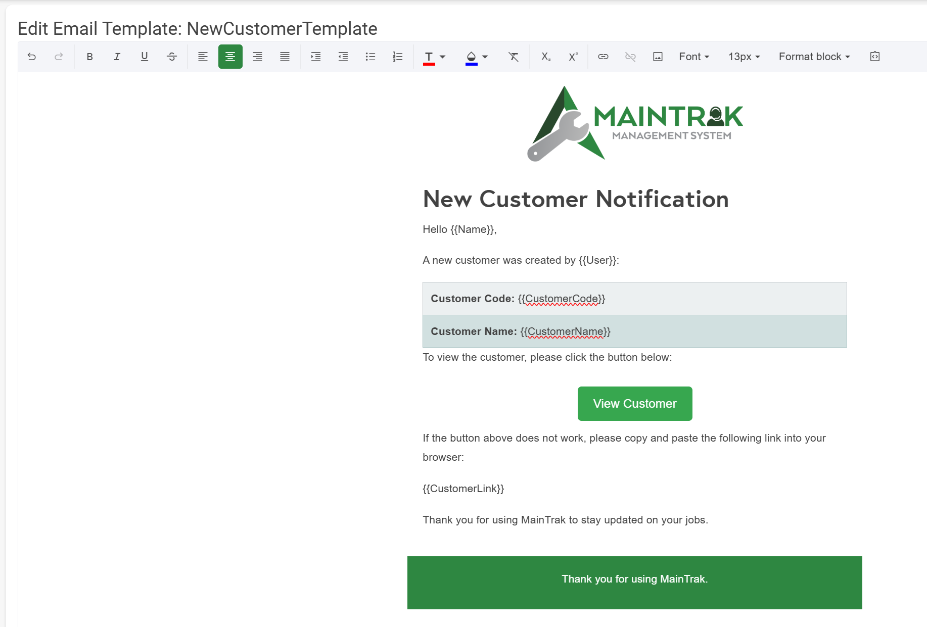 MainTrak’s email template editing feature enables you to customize every email sent through the system. From job updates to SLA notifications, you can create and modify templates to reflect your brand and messaging. Easily insert dynamic markers, adjust content, and ensure your communications are always professional and on-point.